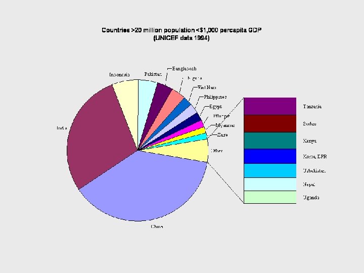 National Poverty, Global Inequality The following slides indicate: n PERCAPITA GDP for each national territory (total product/total population) is the measure of global inequality; n people in poor countries are the global majority n people in the richest countries, which set the tone for global development, are a small minority n most of the world’s poor live in Asia. n poverty correlates with life expectancy (among other quality of life variables