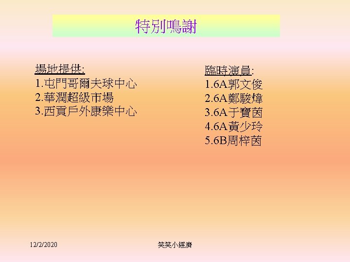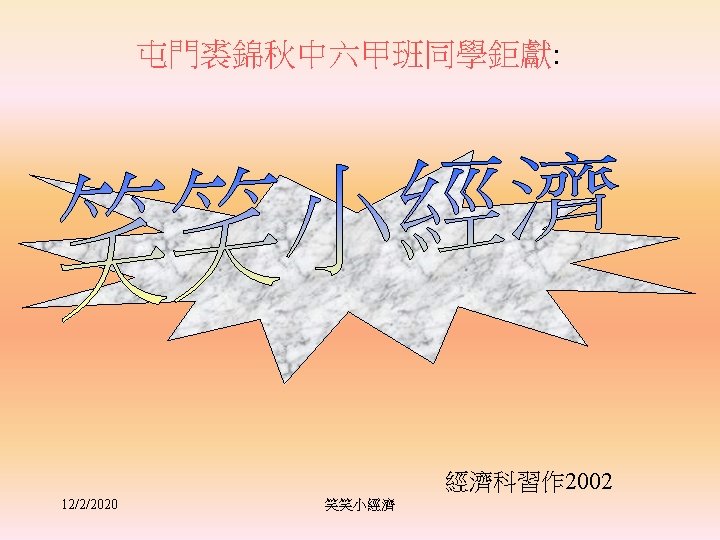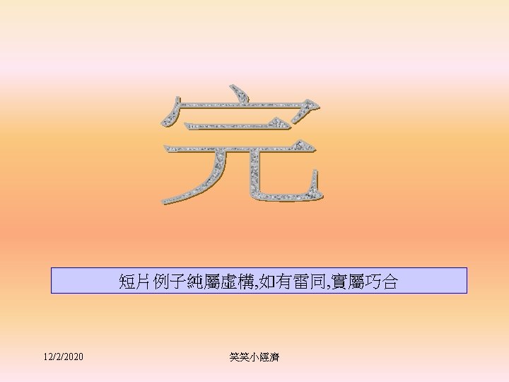 Marginal Rate of Time Preference • Measures the MV of present consumption. • Interest rate measures the price of present consumption. • in equilibrium, MRTP=interest rate 12/2/2020 笑笑小經濟