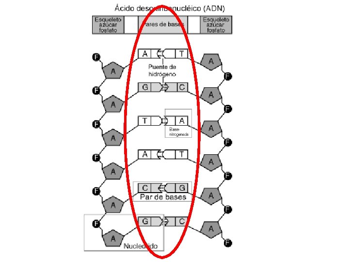 LA ESTRUCTURA DEL ADN • Doble hélice formada por moléculas llamadas nucleótidos. • Cada nucleótido: azúcar (desoxirribosa) + fosfato + base nitrogenada (A, T, G, C) • Unión de cadenas:
