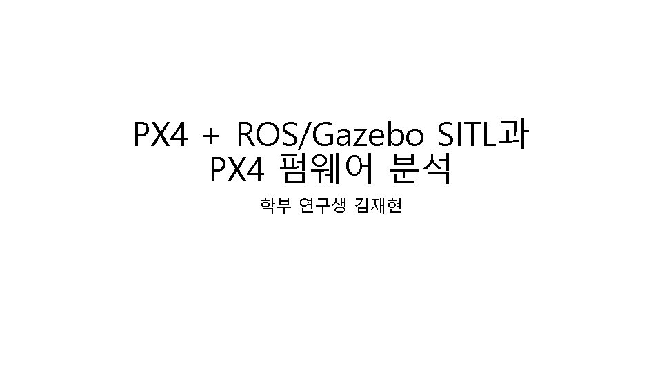 ROS+Gazebo 기반 SITL 개발환경 • 멀티 부팅 혹은 단일 부팅 우분투 18. 04 LTS - Vmware로 구동할 경우 최소 6 GB 램을 할당 해야 하며 3 D 하드웨어 가속 옵션을 해제 해야함. • wget https: //raw. githubusercontent. com/PX 4/Devguide/v 1. 9. 0/build_scripts/ubuntu_sim_ros_melodic. sh • Source ubuntu_sim_ros_melodic. sh - Ubuntu 18. 04용 ROS Melodic + Gazebo 9. 0 설치 • git clone https: //github. com/PX 4/Firmware. git --recursive - PX 4 펌웨어 설치 • GSTREAMER 패키지 설치 명령어 sudo apt install libgstreamer 1. 0 -dev sudo apt install gstreamer 1. 0 -plugins-good sudo apt install gstreamer 1. 0 -plugins-bad sudo apt install gstreamer 1. 0 -plugins-ugly - Make px 4_sitl gazebo 명령어를 칠 경우 pip을 통해 추가 프로그램을 받을 필요가 있음. (3개~4개) - 이 방법으로 할 경우 실제 하드웨어에 업로드하기 위한 목적으로 컴파일을 하는 것은 정상 작동하지 않는 것으로 보임
