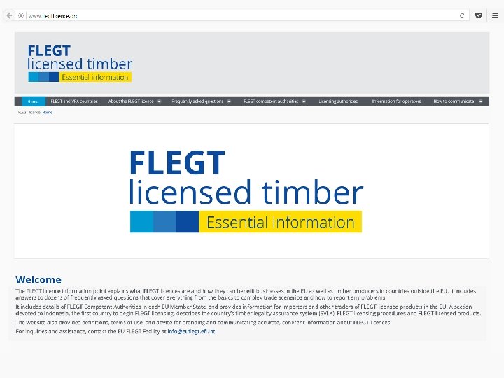 Pour de plus amples informations sur les autorisations FLEGT et les produits bois couverts par le régime d'autorisation FLEGT ou trouver des réponses aux questions fréquemment posées, merci de visiter: www. flegtlicence. org
