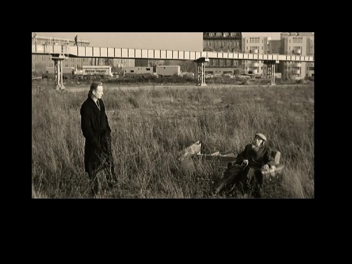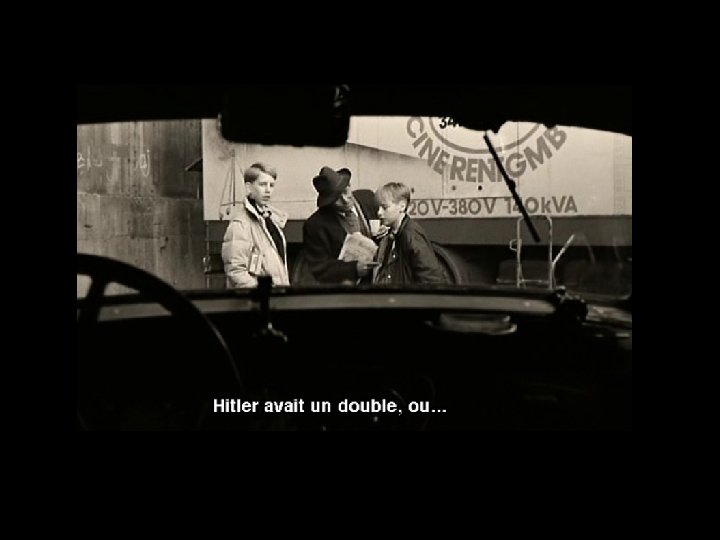 "Je ne retrouve pas Postdamer Platz! Non, je crois ici. . . Ca ne peut être ça! Postdamer Platz, c'est là qu'il y avait le café Josti. . . J'y venais l'après-midi faire la conversation, prendre un café et regarder le public, après avoir fumé mon cigare chez Löhse et Wolf, marchands de tabac réputés, ici, juste en face. Donc, ça ne peut pas être Postdamer Platz, non! Et personne. . à qui demander. C'était une place animée! Des tramways, des omnibus à chevaux et deux autos, la mienne et celle du chocolatier. Le magasin Wertheim aussi était ici. Et puis, soudain, des drapeaux sont apparus. . . Toute la place en était couverte. . . Et les gens n'étaient plus du tout aimables, la police non plus. Mais je n'abandonnerai pas tant que je n'aurai pas retrouvé Postdamer Platz! Où sont mes héros, où êtes-vous mes enfants? Où sont les miens, les obtus, ceux des origines? Apelle-moi, Muse, le pauvre chantre immortel qui, abandonné des mortels qui l'écoutaient. . . perdit la voix. . . lui, qui de l'ange du récit qu'il était, devint l'aède ignoré ou raillé au-dehors, sur le seuil du no man's land. "