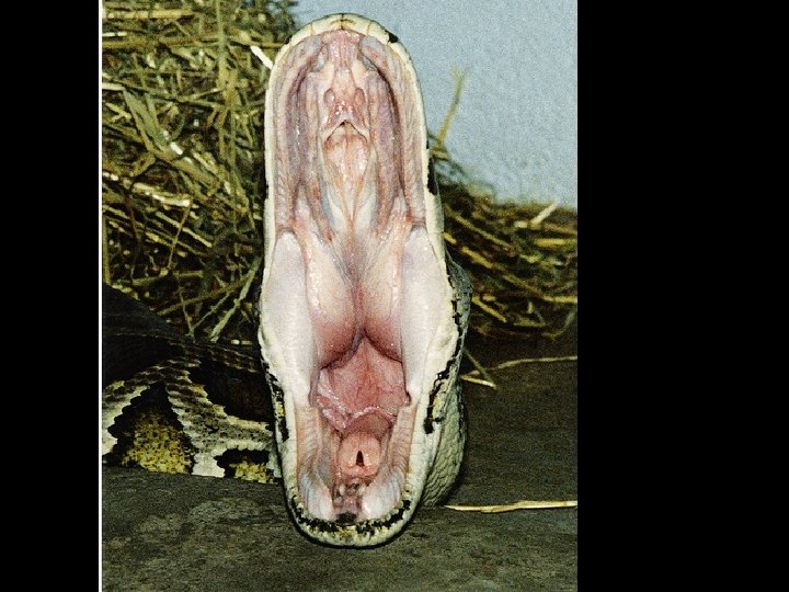 • 37. Snakes have elastic ligaments in their jaws and can swallow prey much larger than its head. • The glottis is a respiratory opening for breathing while it is swallowing its prey.
