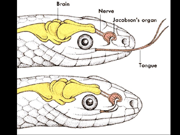 • 51. A snake’s tongue flicks out and then moves to the Jacobson’s Organ. This helps them to determine the direction of their prey.
