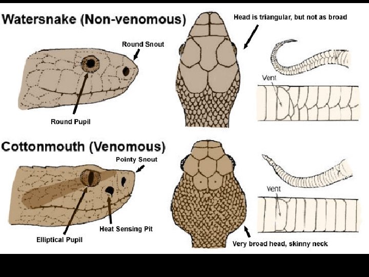 • 38. Vipers possess hollow fangs on the upper jaw. These fangs connect to venom glands that inject venom when the viper bites.