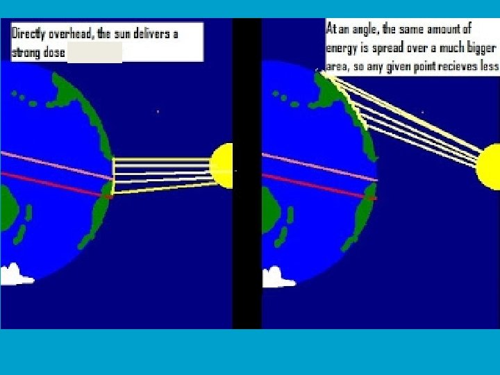 1. The land at the equator has the highest average annual temperatures primarily due to the fact that A. It is closer to the sun B. The midday sun is at a more direct angle (closer to 90°) on average. C. It has the highest humidity level D. It has the highest air pressure