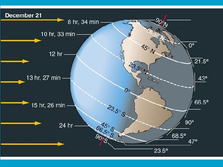 2. On December 21 at midday, the sun is directly over head which latitude? A. B. C. D. E. 30 °N 23. 5 °N (Tropic of Cancer) 0 ° (the Equator) 23. 5 °S (Tropic of Capricorn) 30 °S