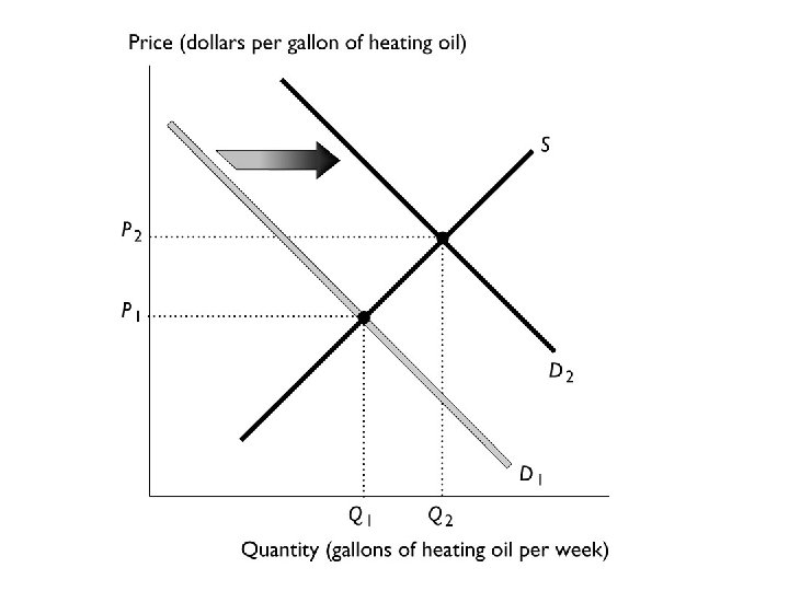 Free Response 2 • Consumers can use either natural gas or heating oil to warm their houses. Suppose the price of natural gas increases. Use a demand supply diagram to show the impact of the higher price of natural gas on the market for home heating oil. •