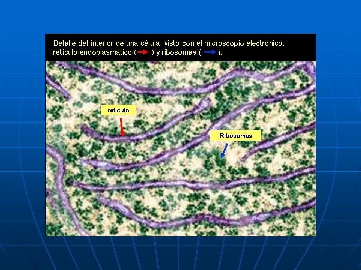 El Retículo endoplasmático constituye un sistema membranoso de canales internos. Hay dos formas distintas de retículo endoplásmico: el rugoso (RER), asociado a otro organelo llamado ribosoma, y el liso (REL) que no posee ribosomas.