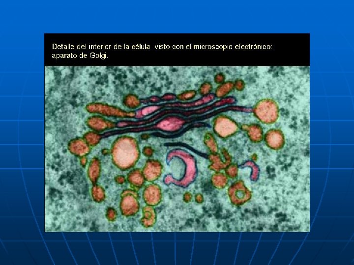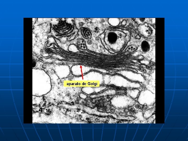 El Aparato de Golgi (AG) es un sistema mixto de cisternas apiladas (compartimentos rodeados de membrana, flechas rojas) y de vesículas (flechas azules) que se localiza en el citoplasma de las células. La principal función de este organelo es el transporte de secreciones desde el interior de la célula al medio extracelular.