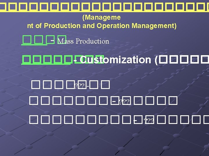 ������� Japan ==> Dimming Prize ������ Edward Dimming Father of Quality in Japan USA ==> Malcolm Baldrige Award Thailand ==> ������ http: //www. tqa. or. th/ Ex. TQM clip