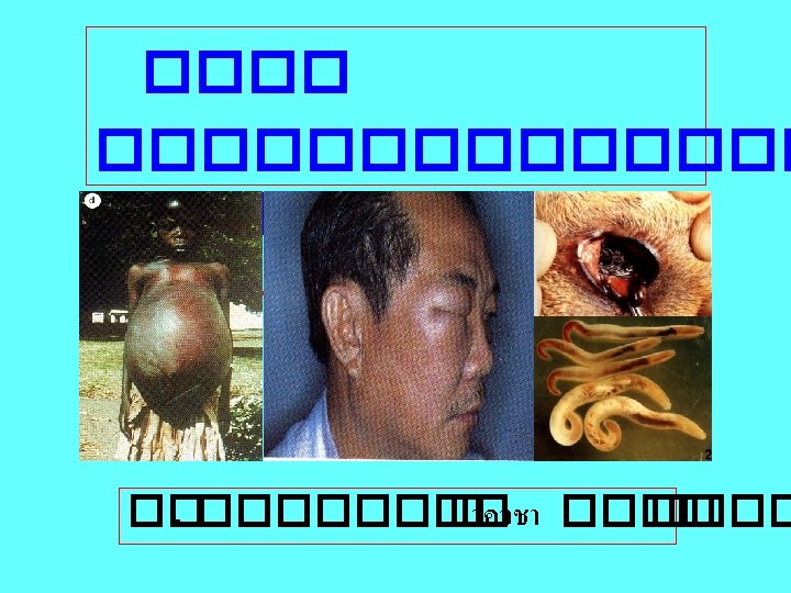 ������� : Sings&History in edemic areas Immunological test ELISA/CF ���������� ควบคม Mebendazole Against muscle larvae Levamisol&Pyrantel Adult worms Corticosteroids ������� (���� > 60 o. C( Care on hand, knives, chipping boards No feeding uncooked waste food to pigs