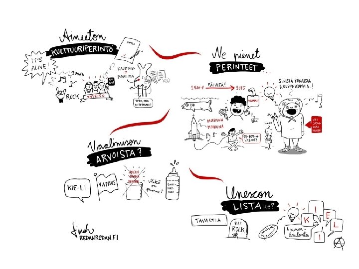 Wikiförteckningen över levande kulturarv • I Finland samlas exempel över levande kulturarv i Wikiförteckningen • Det finns redan över 130 traditioner i Wiki • olika samhällena, föreningar och grupper står bakom artiklar, Wiki modereras av Museiverket • http: //wiki. aineetonkulttuuriperinto. fi • Se Korsnäströjan eller Tikkuristi https: //www. youtube. com/watch? v=Pu. Abqa 0 Cn. Jo