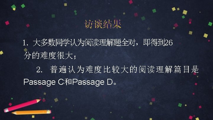 细节推断题的提问方式 1. What can we learn from the passage? 2. From the passage, we can learn that … .