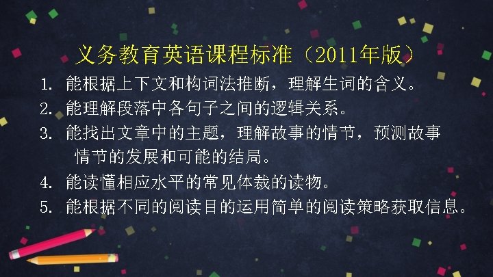 猜测词义题 53. What does the expression “at their own pace” in Paragraph 3 probably mean? A. According to their own timetable. B. Without their teachers’ help. C. Because of their wonderful goals. D. Against their parents’ hope. 2015年北京市中考阅读D篇