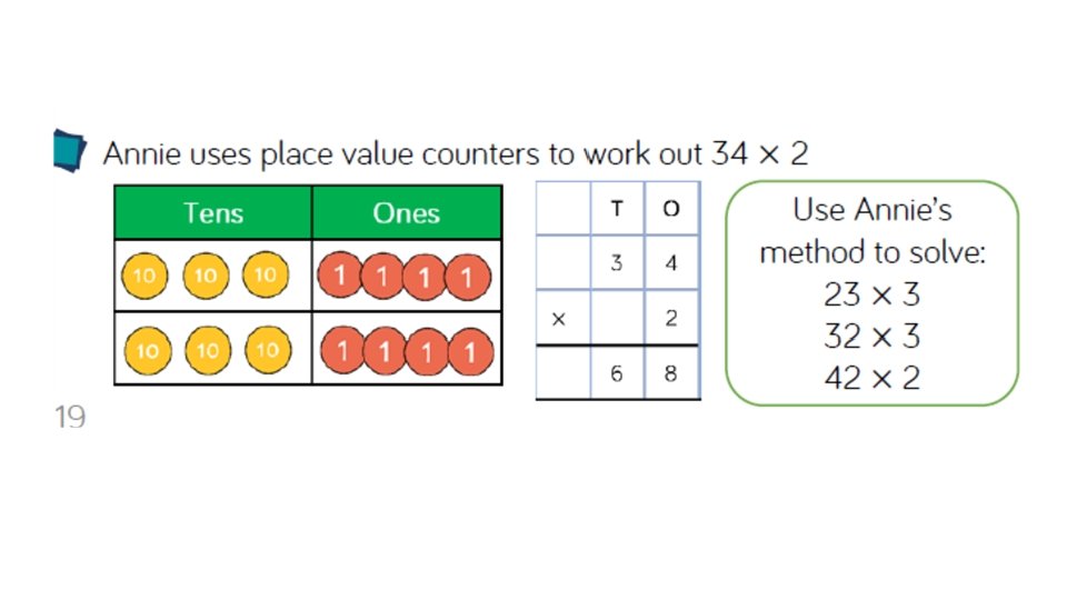 Multiplying 2 digit numbers by a 1 digit number – no exchange