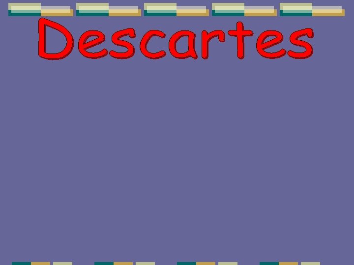 Descartes revision sheet 1 1. Cartesian dualism is _______ and _____. 2. Descartes was a rationalist which means 3. Two influential periods before Descartes were _____ and _____. 4. From each he took a) b) 5. What influence did mathematics have on Descartes? 6. Why was Descartes a sceptic? 7. Why was Descartes not a sceptic? 8. Explain what Descartes was trying to do (story of the building) and what was his method called?