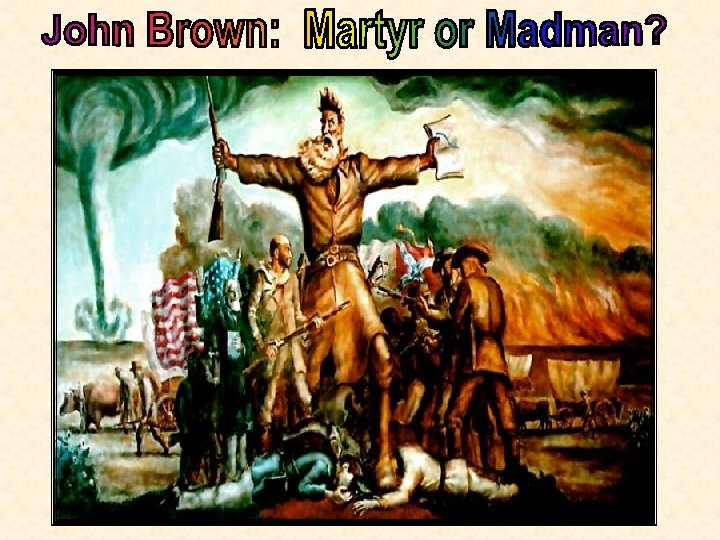 • Violent abolitionist • Involved in the Bleeding Kansas • Murdered 5 pro-slavery men in Kansas • Wanted to lead a slave revolt throughout the South by raising an army of freed slaves and destroying the South.