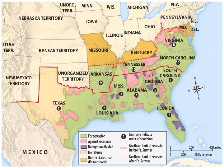 1. Wilmot Provisio 2. Compromise of 1850 3. Free Soil Party 4. Fugitive Slave Law 5. Kansas and Nebraska Act 6. Bleeding Kansas 7. Stephen Douglas 8. Republican Party 9. Abraham Lincoln 10. James Buchanan • Do questions from pgs. • 394: 2, 3, 4 and 5 • 400: 3, 4 and 5 11. Dred Scott Decision 12. John Brown 13. Election of 1860 14. South Carolina 15. Secession 16. Confederacy 17. Jefferson Davis 18. Union 19. Jefferson Davis 20. Fort Sumter