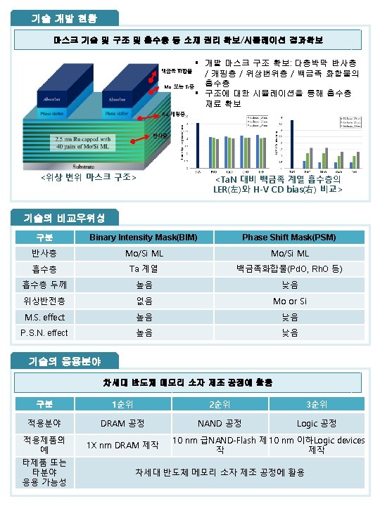 시장성/사업성 세계 반도체 시장의 매출 증가 1 X nm급의 DRAM 개발로 EUV 공정 필수 § 세계 반도체 시장의 매출: 3, 150억 달러 → 3, 398억달러(2013년 대비 7. 9% 증가) § 현재 반도체 미세공정 경쟁: DRAM은 20 nm, NAND-Flash는 3차원 적층 → Ar. F(더블 패터닝 (DPT), 쿼드러블패터닝 (QPT) 등)로 구현가능 → 하지만 궁극적으로 1 X nm 이하 공정에서는 EUV 활용 필수임 패터닝 (DPT), 쿼드러블패터닝 (QPT) 등이 활용 § EUV 장비 시장: 양산형 EUV 장비 시장 형성 예상(2015) → EUV 노광장비 본격 적용 (2016)_ASML § 국내 개발 현황: 삼성전자/SK하이닉스 1 X nm급 미세패턴 형성 연구중 → EUV 노광기 구입하여 시험가동 중 → EUV용 마스크 필수 관련 특허 & 논문 특허 특허 논문 논문 KR 10 -1490603 KR 10 -1511426 Journal of Vacuum Science & Technology B Applied Physics Express 극자외선 노광 공정용 마스크 Improved Imaging Properties of Thin Attenuated Phase Shift Masks for Extreme Ultraviolet Lithography Very-thin EUV mask absorber material for extremely fine pitch patterning Stochastic Patterning Simulation Using Attenuated Phase -Shift Mask for Extreme Ultraviolet Lithography Attenuated phase-shift mask for mitigation of photon shot noise effect in contact hole pattern for extreme ultraviolet lithography 대표연구자 정보 안진호 교수(한양대학교 신소재공학부, 산학협력단장) § EUVL Test Bed 구축 및 평가기술 개발 및 기술이전 § 절연막의 적층증착에 의한 저항 메모리 소자의 제조방법 개발 및 기술이전 § NEC의 microelectronics 연구소 연구원 재직 Name : 이현규 연구원 Tel : 02 -736 -9845 E-mail : hglee@compa. re. kr 특허법인 리온 Name : 방찬영 팀장 Tel : 070 -7730 -6228 E-mail : cybang@leeon. kr
