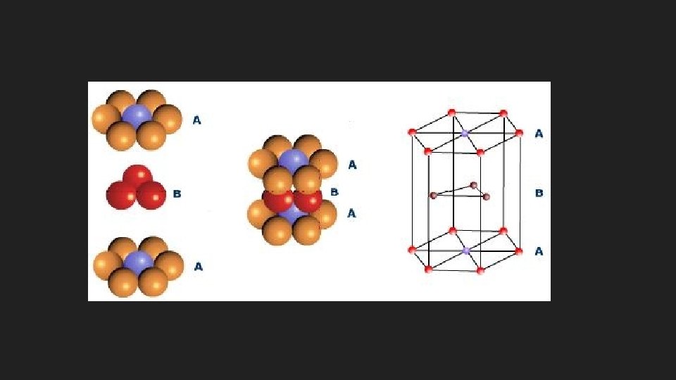 A. Closest Packing Structure Arrangement of packing uniform hard spheres into the most efficient use of available space to the component parts Spheres are arranged in layers, with each sphere being surrounded by six others In the second layer, the spheres do not lie directly on top of each other but instead fill in dimples formed by three spheres in the first layer In the third layer the particles can arrange themselves in two ways: They can lay directly over the spheres in layer #1 (a, b, a, arrangement) Or they can occupy spots so no sphere in layer 3 sits on top of a sphere from layer 1 (abc arrangement)