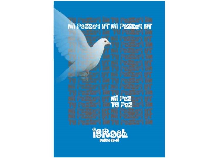 OTROS TRABAJOS PRESENTADOS TU PAZ, MI PAZ Participantes: Daniela Malqui (Tel Aviv, Israel), Diego Malqui (Santa Fé, Argentina). Tutores: Sergio Malqui, Mónica Plotnic de Malqui, Alberto Malqui. Se trata de un mensaje expresado con simpleza y unidad. El color azul del fondo está asociado a los colores de la bandera de Israel. La repetición de las palabras conforma una trama que provee al diseño orden y armonía visual, intentando así concentrar la atención del receptor en una especie de juego lúdico, que lo hace detenerse, distinguir, volver a mirar, en una búsqueda continua por encontrar el mensaje. Consideramos que el juego y la recepción activa de los mensajes hacen referencia al inseparable vínculo entre paz y educación.