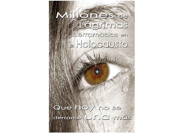 OTROS TRABAJOS PRESENTADOS NI UNA LAGRIMA MÁS Participante: Carolina Victoriano Díaz (República Dominicana) Se dice que los ojos son las puertas del alma. Muchas lágrimas han brotado de las almas que sufrieron la Shoá. No queremos que el pueblo judío tenga que seguir llorando más perdidas, por eso nuestros ojos miran esperanzados hacia la paz que llegará.