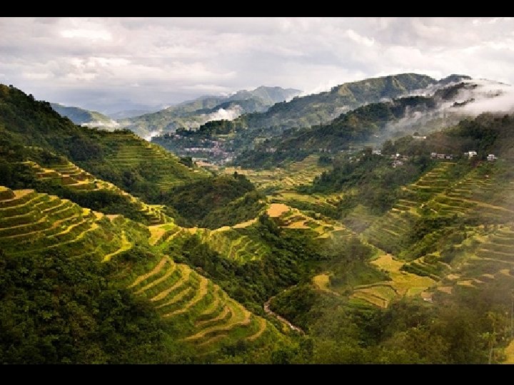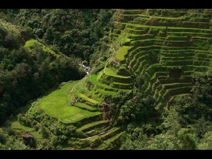 10. Terasele de orez din Banaue - Filipine Terasele de orez din Banaue au cel putin 2000 de ani vechime si au fost sapate pe coastele muntilor filipinezi de catre stramosii localnicilor de astazi. Filipinezii le mai numesc si "A opta minune a lumii", termen deloc exagerat daca ne gandim ca totul a fost realizat cu un minim de echipament si utilaje, in cea mai mare parte fiind construite manual. Situate la o altitudine de circa 1500 de metri, terasele de orez acopera o suprafata uimitoare de 10. 360 de kilometri patrati si inca sunt irigate de un sistem ingenios ce sa pastrat din Antichitate. Se spune ca daca toate trepetele teraselor ar fi puse cap la cap, lungimea lor ar egala jumatate din lungimea Ecuatorului. Localnicii le folosesc si astazi pentru a planta orez si legume, iar lucrarile de consolidare si intretinere a teraselor au loc in fiecare an din cauza eroziunii puternice. Terasele de orez din Banaue au fost incluse in patrimoniul UNESCO in anul 1995.
