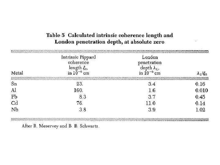 → Critical modulation for destroying super. C is Intrinsic coherence length: see Table 5 ξ in impure material is smaller than ξ 0. (built-in modulation) see Tinkham, p. 7 & 113. ξ & λ depend on normal state mfp l. Pure sample: → Dirty sample: → ξ 0 = 10 λL Type II