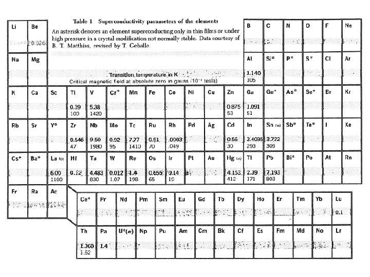 Occurrence of Superconductivity Occurrence: Metallic elements, alloys, intermetallic compounds, doped semiconductors, organic metals, … Range of TC : 90 K for YBa 2 Cu 3 O 7. . 001 K for Rh. Si: TC = 8. 3 K at P = 165 Kbar