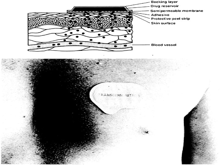 ? Not all nitroglycerin systems have the same construction. For example, the Transderm. Nitro TDDS is a four-layer drug pouch system, whereas the Deponit TDDS is a thin two-layer matrix system resembling. ? Patients should be given explicit instructions regarding the use of nitroglycerin transdermal systems. Generally, these TDDSs are placed on the chest, back, upper arms, or shoulders.