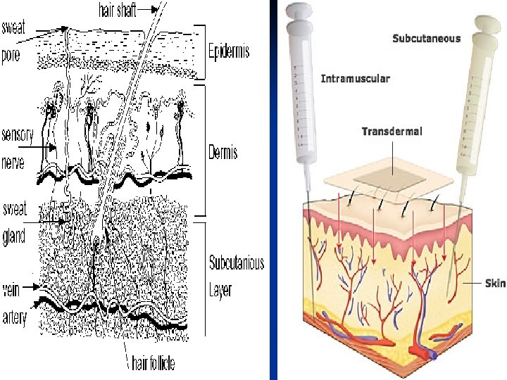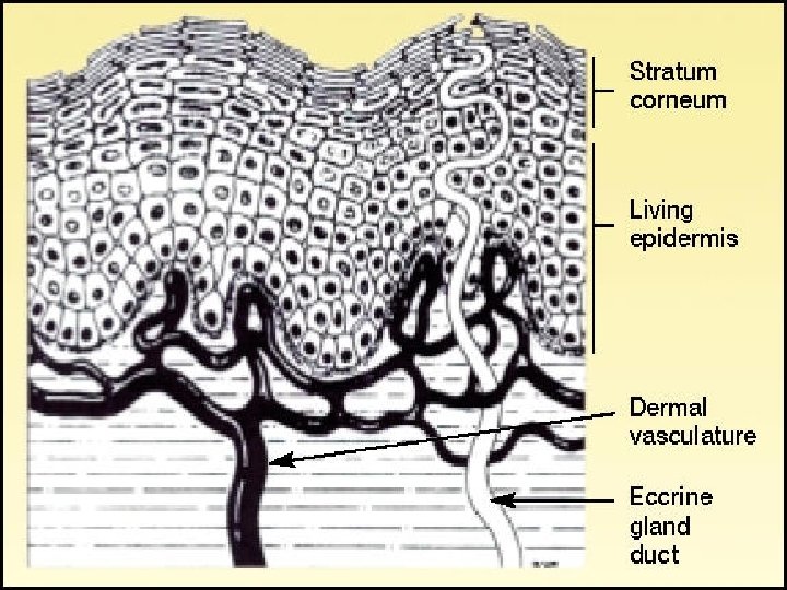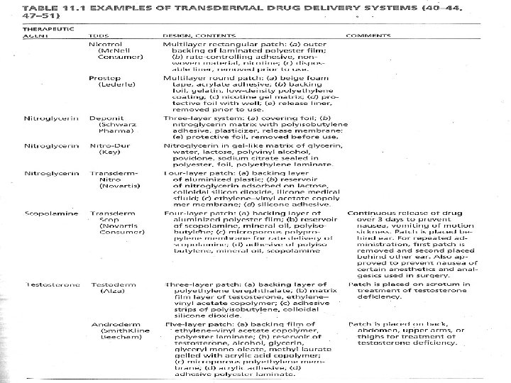 n For transdermal drug delivery, it is considered ideal if the drug penetrates through the skin to the underlying blood supply without drug buildup in the dermal layers. n 理想的经皮给药系统时,药物 渗透入皮肤后,能够进入血液 而不在皮下蓄积。 (3 M Transdermal Drug Delivery http: //www. 3 M. com/DDS)