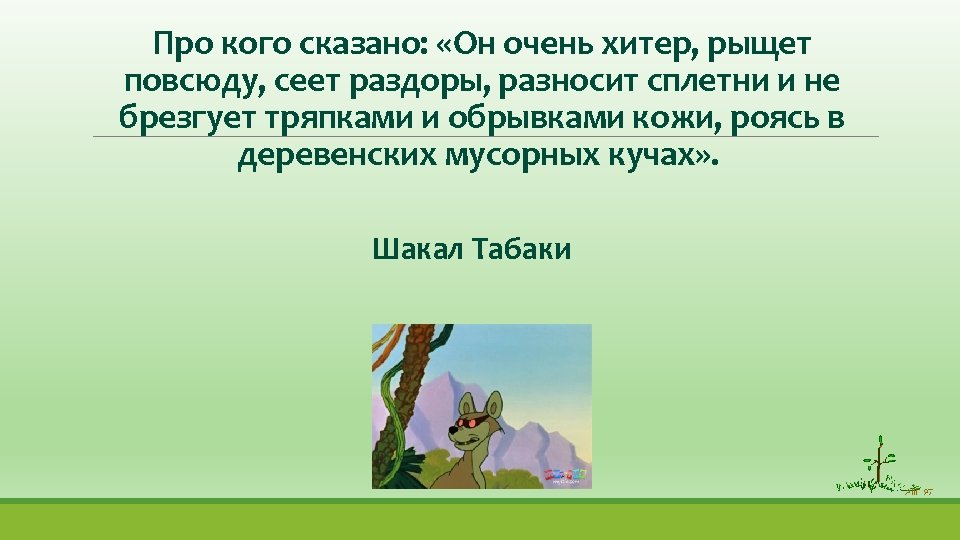 http: //go 1. imgsmail. ru/imgpreview? key=http%3 A//static. eva. ru/eva/300000 -310000/307312/channel/7462875664828935. jpg&mb=imgdb_preview_1826 Багира http: //www. ukrlit. vn. ua/zaruba/lib/kipling/maugli_klad. jpg Каа http: //bankreceptov. ru/pic/skazki-0215. jpg плен http: //bankreceptov. ru/pic/skazki-0222. jpg Шер хан http: //www. greenmama. ru/dn_images/01/28/71/87/1259828442 sherhan. jpg совет http: //www. youwall. com/papel/a 292524 f 00. jpg Багира и Маугли http: //fotoramochki. com/personaj/clipart-90. jpg Маугли http: //www. o-prirode. com/_ph/44/1/431671139. jpg волк http: //www. o-prirode. com/_ph/44/1/368306121. jpg тигр http: //nattik. ru/wp-content/uploads/2012/02/dikie_wivotnie 23 -150 x 127. jpg обезьяны http: //nattik. ru/wp-content/uploads/2012/02/dikie_wivotnie 13. jpg слон http: //www. deskpic. ru/img_mini/4682. jpg пантера http: //u. jimdo. com/www 48/o/sce 213 d 42692405 fa/img/i 4 a 0 b 401 d 4926 be 3 a/1379260583/thumb/image. png зубр http: //basik. ru/images/india_monkey/05. jpg в заброшенном городе http: //marina-dorih. ru/wp-content/uploads/2011/08/%D 0%B 1%D 1%83%D 0%BA%D 0%B 2%D 0%B 0 -%D 0%A 8 -300 x 225. jpg шакал http: //900 igr. net/Detskie_prezentatsii/biologiya/KHischniki_2. files/slide 0009_image 008. jpg шакал фото http: //www. kartinki. me/mini/201204/1409. jpg бйвол http: //myltia. com/files/gallery/maygli/big/maygli 5. jpg на скале http: //myltia. com/files/gallery/maygli/big/maygli 2. jpg шакал из мульт