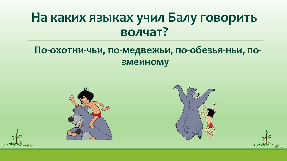 http: //sovetskiymultik. at. ua/_ph/552/1/817005642. jpg АКЕЛЛА http: //multiki-kartinki. narod. ru/maugli/jungle-book 25. gif Балу пляшет http: //upload. wikimedia. org/wikipedia/commons/thumb/2/2 f/Milvus_migrans_2005 -new. jpg/275 px. Milvus_migrans_2005 -new. jpg коршун http: //multiki-kartinki. narod. ru/maugli/jungle-book 40. gif на лиане http: //go 4. imgsmail. ru/imgpreview? key=http%3 A//s 70. ucoz. net/video/39/59259802. jpg&mb=imgdb_preview_1 928 http: //blestiashky. narod. ru/1/blestiashka-125. gif птички http: //school. xvatit. com/images/f/f 8/T 34 m 5. jpeg Маугли картинки http: //go 1. imgsmail. ru/imgpreview? key=http%3 A//stat 20. privet. ru/lr/0 b 22879 e 477 e 554 f 852 d 0 b 0 d 5 d 1 fb 254&m b=imgdb_preview_1527 индианка http: //www. o-prirode. com/_ph/31/2/268910518. jpg джунгли http: //animashky. ru/flist/obprirod/2/5. gif дерево http: //animashky. ru/flist/obprirod/2/12. gif пальма http: //animashky. ru/flist/obprirod/2/64. gif 2 пальмы http: //animashky. ru/flist/obprirod/2/71. gif дерево растет