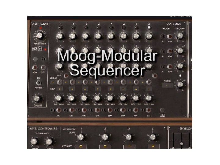 Analoger, modularer, spannungsgesteuerter Synthesizer (Prinzip „Moog“) Wie funktioniert nun solch ein Synthesizer? OSZ FIL KBD ENV 1 AMP ENV 2 Siehe auch das Video zur App „Mod. Synth“: https: //www. youtube. com/watch? v=w. ILRFLu_Zn. M
