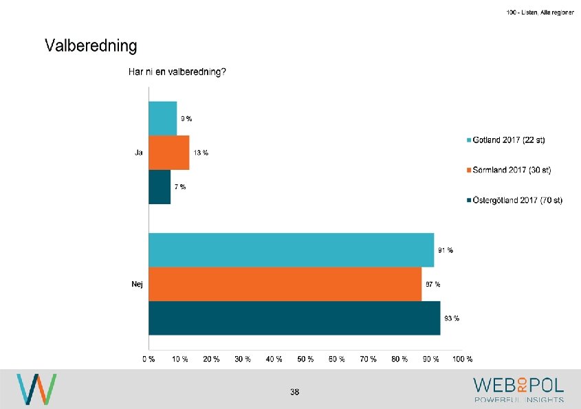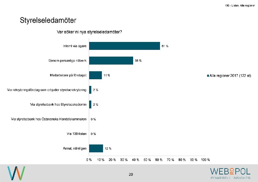 100 - Listan, Alla regioner • Politiskt tillsättning (8 st) • Vi söker inga (4 st) • Koncernledning (2 st) • Vet ej, styrelse/valöberedningsfråga, ej CEO-fråga (vilket jag är) 21