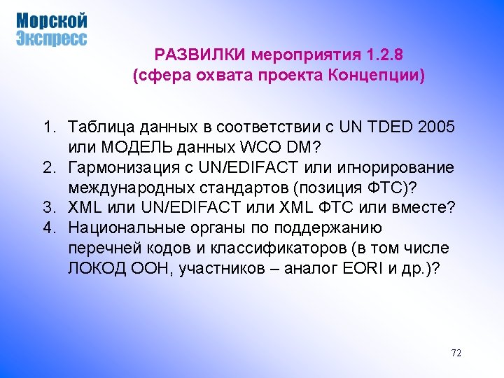 ANSI X 12 против UN/EDIFACT «Ни Вам – ни нам!» 1972 - 1982 1983 1986 1983 • SEDAS, DE • GENCOD, FR • TRADACOM, UK TDI • TRANSCOM, NL • DAKOM, SE • and others UN/EDIFACT ANSI X 12 EANCOM 37 VIC ANS I S EDIF X 12 A CT