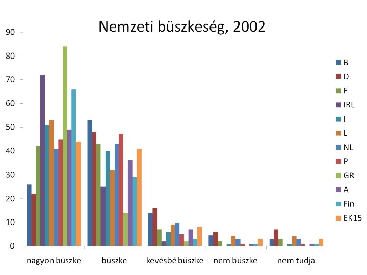 Nemzeti büszkeség, 1970 90 80 70 60 B 50 F D I 40 L 30 NL Eu 20 10 0 nagyon büszke Forrás: Eurobarometer kevésbé büszke nem tudja