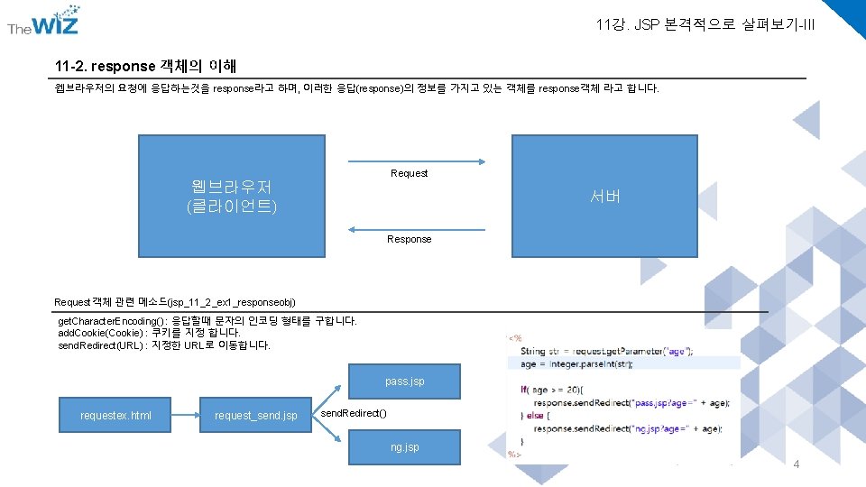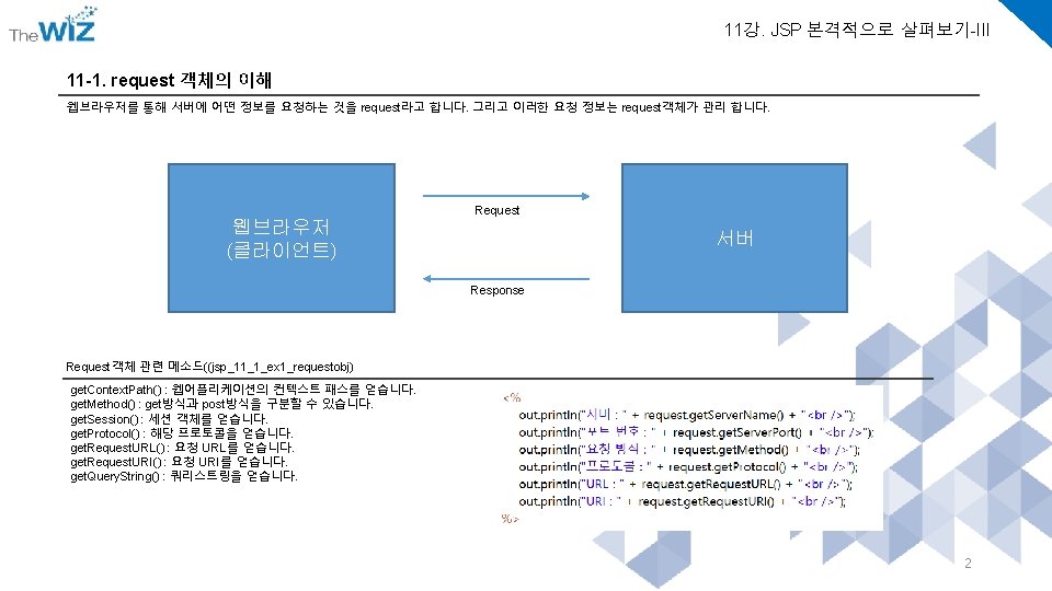 11 JSP III request response Lecturer Kim MyoungHo Slides: 4 Download presentation 11강. JSP 본격적으로 살펴보기-III - request 객체의 이해 - response 객체의 이해 Lecturer Kim Myoung-Ho Nickname 블스 blogstudy@naver. com