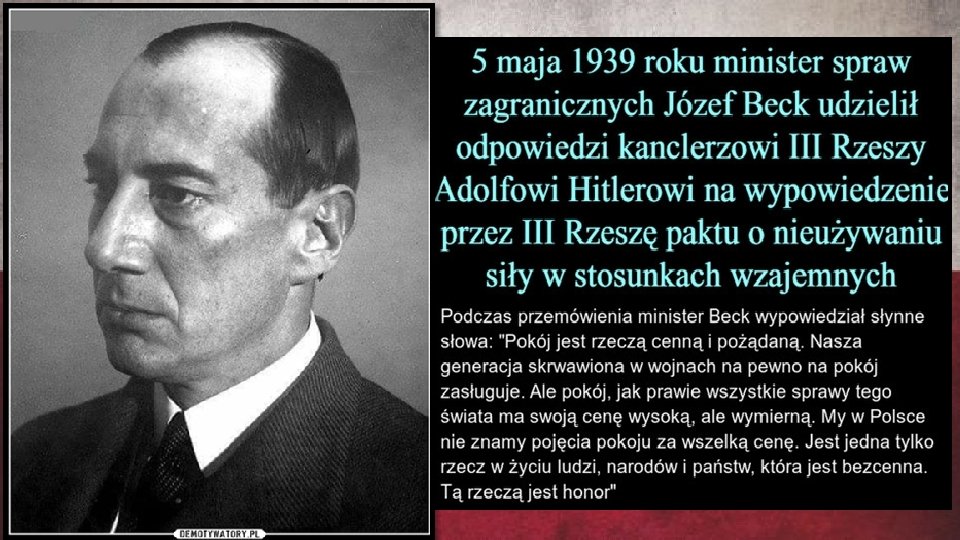 Józef Beck BLISKI WSPÓŁPRACOWNIK JÓZEFA PIŁSUDSKIEGO Kim był? • Polskim politykiem • Dyplomatą