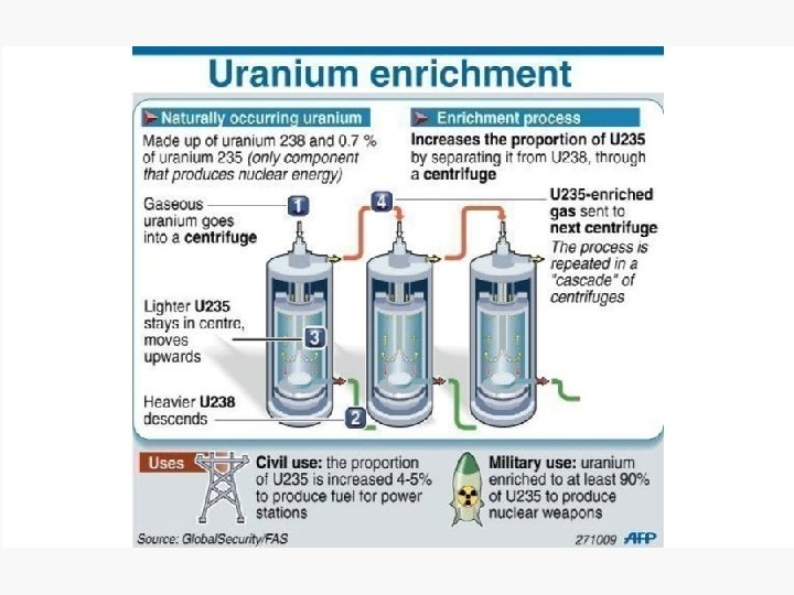 PRODUCTS OF ENRICHMENT Uranium dioxide pellets, held in a gloved hand, contain about 35% of 235 U, the fission fuel in a nuclear reactor. Each pellet contains the energy equivalent of one ton of coal.