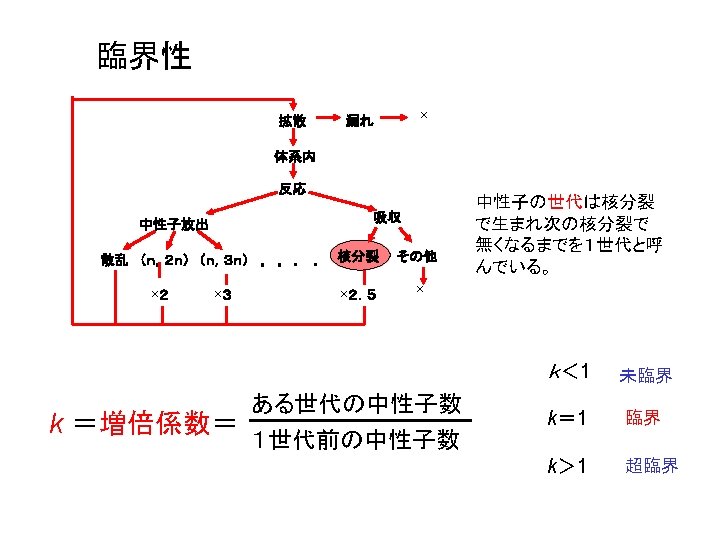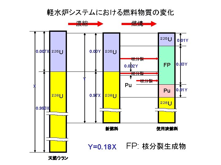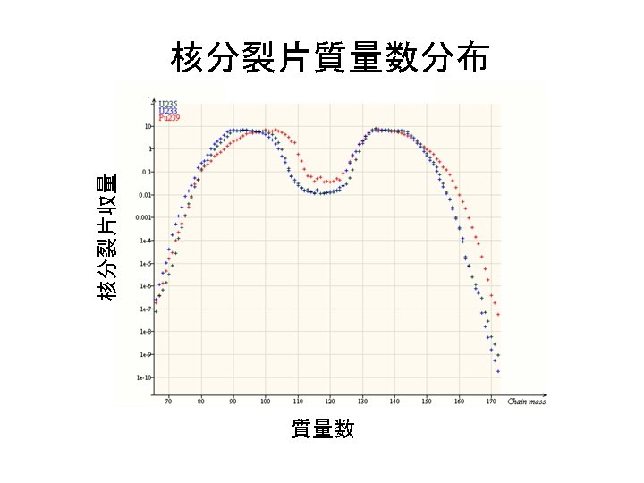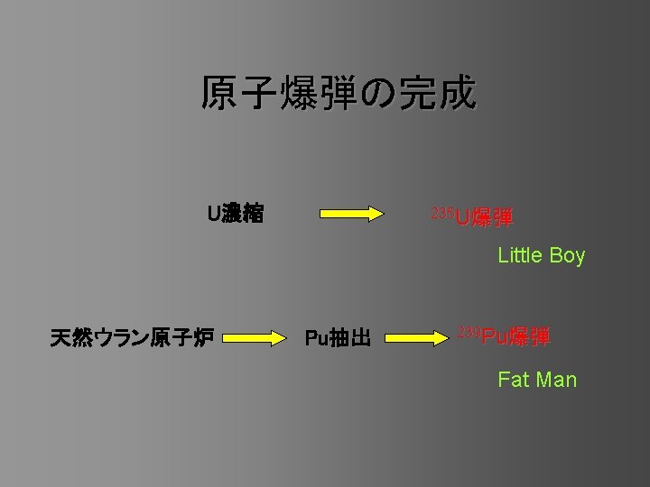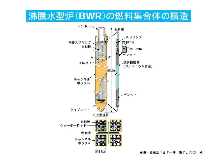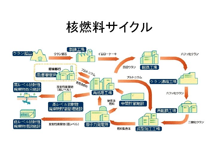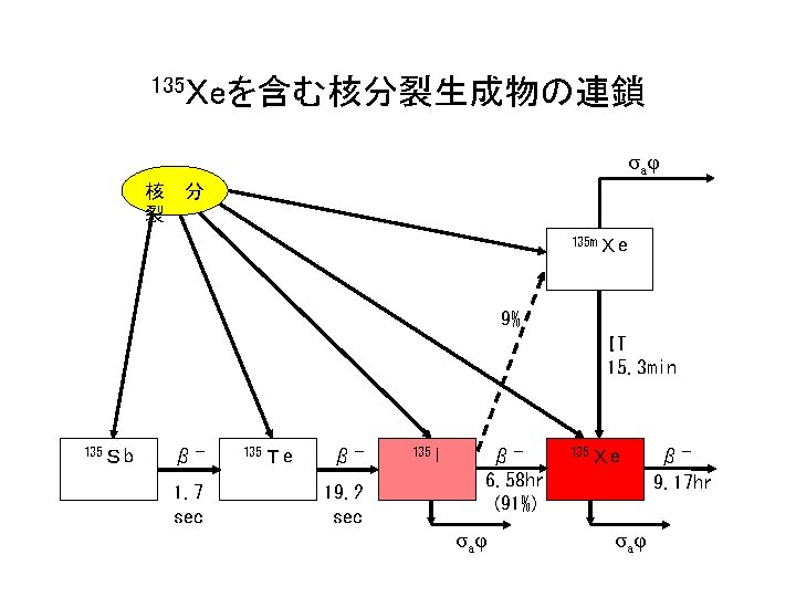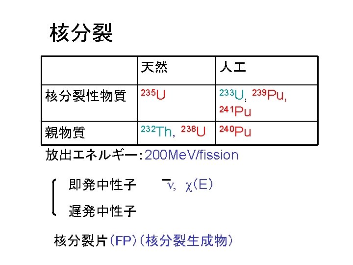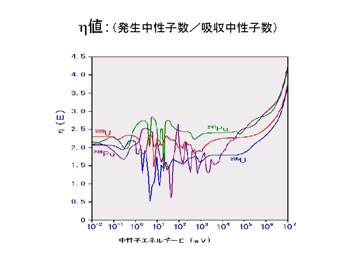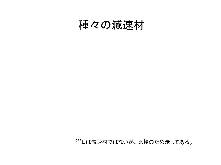 244 Am 10 h 240 Pu 243 Pu 6564 y 239 U 239 Np 23 m 7× 10 y 4 238 U Np 243 2. 1 d 242 m 241 Pu 2. 4× 10 y 238 Pu 9 88 y 237 U 237 Np 6. 8 d Am 5 3. 7× 10 y Pu 4. 5× 10 y Am 5 h 3 Pu 2. 4 d 243 14 y Am 天然に多量に存在 する核種 432 y 核分裂性核種 6 2. 1× 10 y 236 U 236 Np 236 22 h Pu 核分裂性核種とし て重要な存在 7 2. 4× 10 y 2. 9 y 235 U (n, γ)反応 8 α崩壊 7. 0× 10 y ウラン系燃料 β崩壊 (n, 2 n)反応