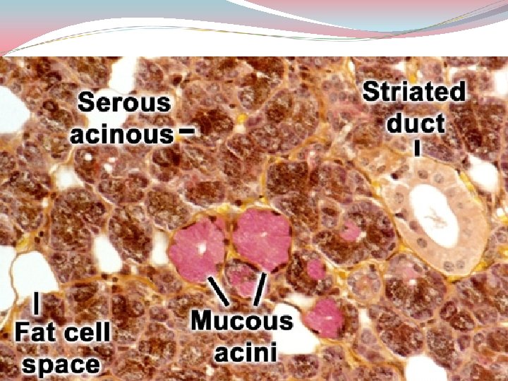 Different types of acini Mucous Serous Mixed