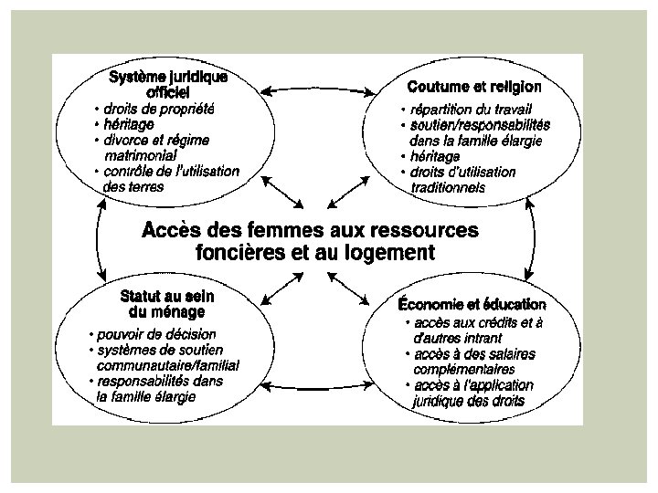DUDH contient plusieurs dispositions qui soutiennent les droits des femmes au logement, aux terres et à la propriété Pacte international relatif aux droits civils et politiques (PIDESC) Art. 17 protège les femmes contre toute discrimination en ce qui concerne les droits LTP § (ratifié par la Cote d’Ivoire en 1992) §) DROITS DES FEMMES 1