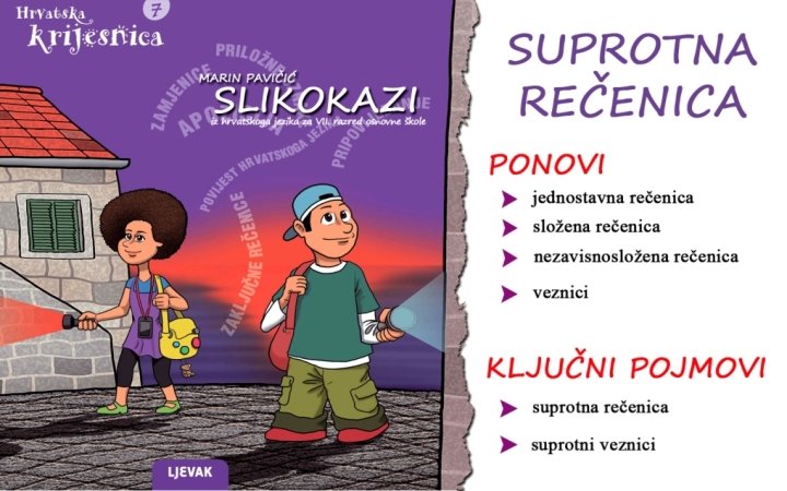 Suprotna rečenica Promotri sljedeću rečenicu. 1. surečenica P 2. surečenica P Nijekontroliraosvojunarav, nego je. Zakucavao zakucavaoječavle Nije čavleu uogradu. veznik slorazličiti. Sadržaji su enaa rečen Surečenisurečenica ce ne zavise ježdn ica ( 2 Sadržaj druge surečenice suprotan je p r o drugoj. edikata) sadržaju prve surečenice su rečenice nezavisnosložene Suprotne li surečenice složenoj rečenici u. Imaju kojima je sadržaj ujedne surečenice Slažu li. Od se Po sadržaji čemu Što je to po vrsti? ilisurečenice. su različiti? zavisan ilirečenica nezavisan odnos? Preoblikuj složenu Odredi Kakva koliko Koja rečenicu je predikate ih se riječ surečenica uzaključuješ? dvije povezuje? upo rečenici. jednostavne sastavu? sastoji? rečenice. suprostavljen sadržaju druge