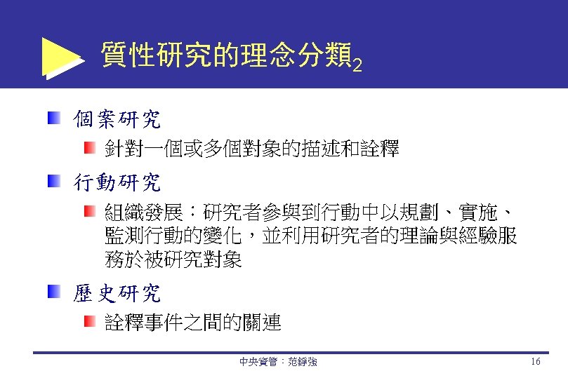 12 Qualitative Research 質性研究/定性研究 中央大學. 資訊管理系 范錚強 mailto: ckfarn@mgt. ncu. edu. tw 2011. 05 updated 中央資管:范錚強 1