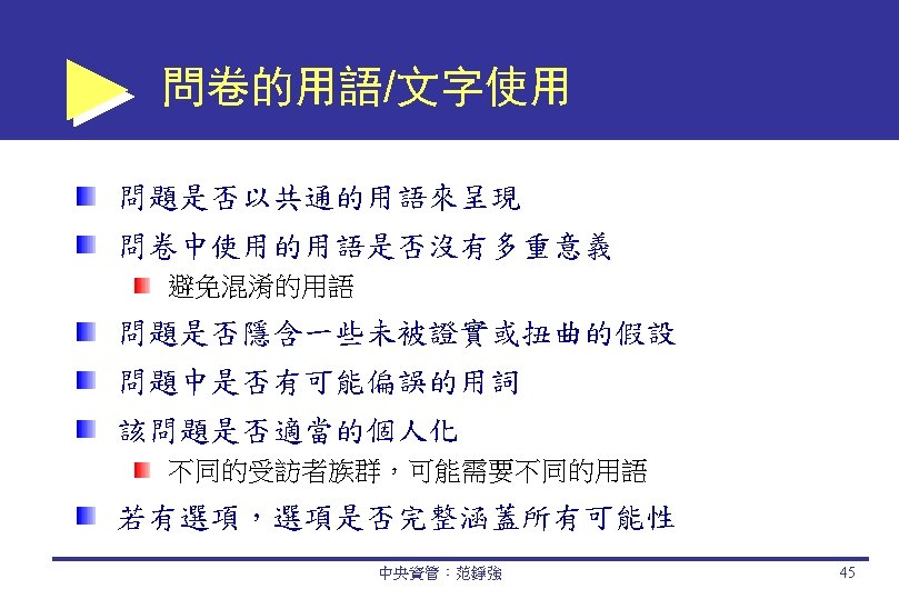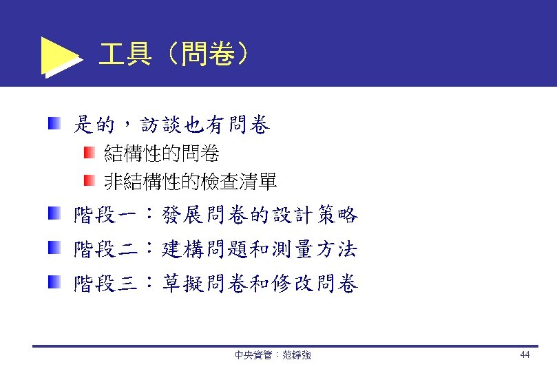 Selecting the Data Collection Method 中央資管:范錚強 53