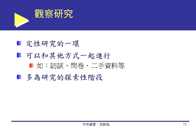 Selecting an Observation Data Collection Approach 中央資管:范錚強 54