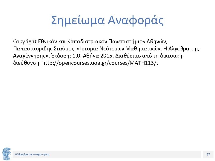 Algebra in Portugal • Pedro Nunes (1502– 1578) Η Άλγεβρα της Αναγέννησης 42