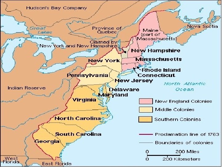 Maryland � In 1632, the English king gave George Calvert land north of Virginia. Calvert was a Roman Catholic who wanted a colony for people of his faith. � King made him baron Baltimore and “lord proprietor” of the colony � Lord Baltimore’s regime overthrown several times by Protestants � Approved Toleration Act of 1649 granting freedom of worship to all Christians